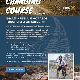 The Rotary Club of Brighton very generously held an epic bike ride by Matt to raise funds for our domestic violence comfort packs. They had to create a plan B through lockdown announcements which made the ride even more challenging but they achieved greatness and we are truly thankful to Matt Nichols and the club.